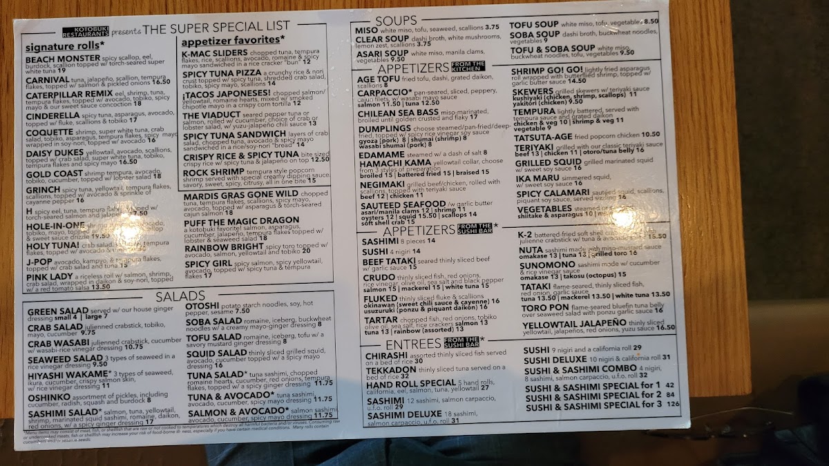 Kotobuki Menu